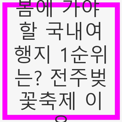 봄의 향기가 물씬 느껴지는 4월, 많은 사람들이 꽃피는 계절을 기다리며 여행 계획을 세우기 시작합니다. 특히 벚꽃은 봄을 상징하는 꽃으로, 전국 각지에서 다양한 벚꽃 축제가 열립니다. 그중에서도 전주 벚꽃 축제는 매년 수많은 관광객을 끌어모으는 명소로 자리 잡고 있습니다. 오늘은 '봄에 가야 할 국내여행지 1순위는? 전주벚꽃축제 이유'에 대해 깊이 알아보겠습니다.