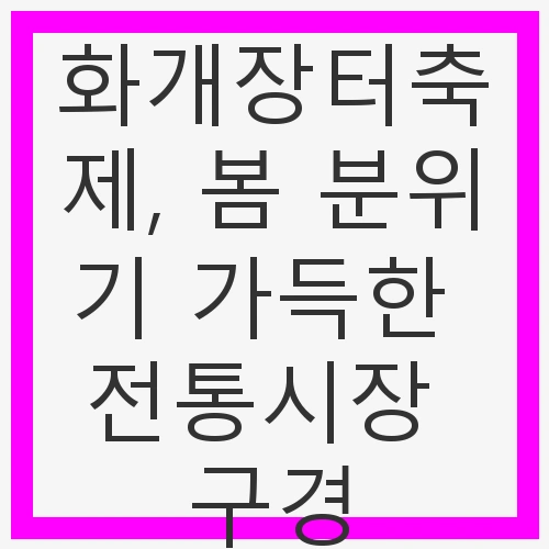 봄의 따뜻한 햇살이 비치는 계절, 전통시장이 지닌 고유의 매력을 만끽할 수 있는 화개장터축제에 발길을 옮겨보았습니다. 경상남도 하동군에 위치한 화개장터는 단순한 시장이 아닌, 지역의 역사와 문화를 엿볼 수 있는 특별한 장소입니다. 매년 봄마다 열리는 이 축제는 화개장터의 독특한 매력을 더욱 부각시키며 수많은 관광객들을 맞이합니다. 장터의 상인들, 그리고 이곳을 찾는 사람들은 모두 화합의 메시지를 전달하며, 맛있는 먹거리와 다양한 볼거리를 제공합니다.
