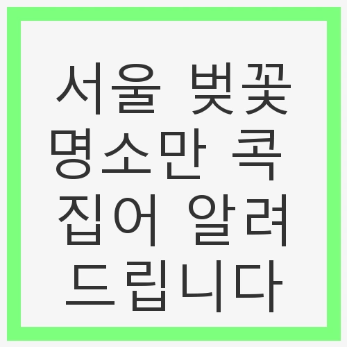 안녕하세요, 봄의 설렘이 가득한 계절이 돌아왔습니다! 서울의 벚꽃이 만개하는 이 시기에, 많은 분들이 벚꽃을 즐기기 위해 나들이를 계획하고 계실 텐데요. 서울에는 눈부신 벚꽃 명소들이 다양하게 존재합니다. 오늘은 특히 벚꽃이 아름답게 피어나는 서울의 명소들을 소개해드릴까 합니다. 이 글을 통해 서울에서 즐길 수 있는 최고의 벚꽃 포인트를 미리 알아보세요! 함께 봄의 향기를 느껴봅시다.