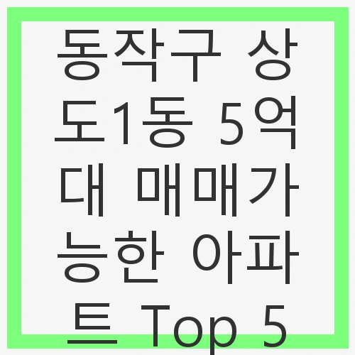안녕하세요. 오늘은 동작구 상도1동에서 매매 가능한 5억대 아파트 Top 5를 소개해 드리겠습니다. 동작구는 서울의 핵심 지역 중 하나로, 접근성이 뛰어나고 다양한 생활 인프라가 잘 갖춰져 있습니다. 특히 상도1동은 최근 몇 년 동안 성장세를 보이며 많은 관심을 받고 있는 지역입니다. 이 글을 통해 여러분이 이 지역에서 적합한 아파트를 찾는 데 도움이 되길 바랍니다.